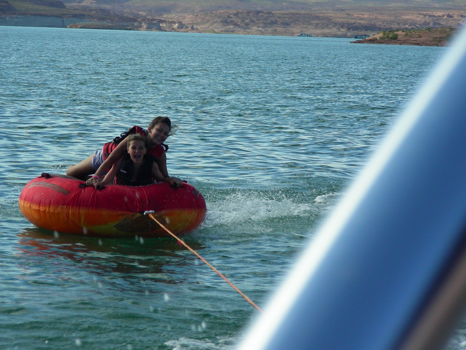 Jessica and I riding on the tube with Mark driving. Scary stuff, but so much fun :)